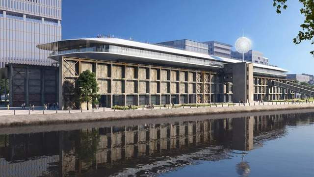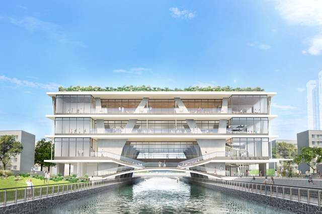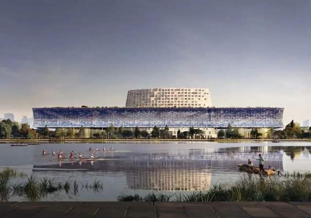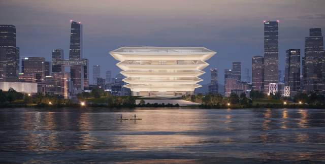 该项目从大运河汲取灵感,采用悬浮式设计,将主体建筑抬升12米,下方释放为公共空间。5万平方米展区可分两层独立运营,玻璃幕墙倒映水面,在致敬水道历史的同时,也展现了现代建筑美学,为杭州融合自然、历史与创新。