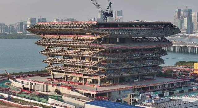 前海博物馆由何镜堂院士主持设计,以“文明之树、时代明灯”为理念,占地3.24万平方米,总建筑面积12.6万平方米。项目在传统博物馆基础上,创新融入公共文化功能,打造复合型文化综合体。目前主体结构已封顶,正进行内部装修,预计2026年10月投入试运营。