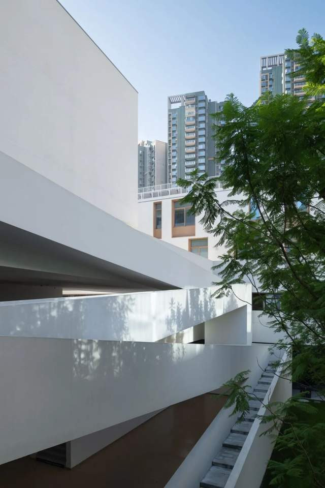 项目位于深圳南山粤海街道,面对用地局促的限制,转而采用高密度策略创造新型公共空间。设计打破常规,在不同高度置入多个相互连通的空中公共平台,构成一个立体的“城市空中客厅”,为社区提供了丰富的活动场所。