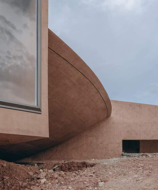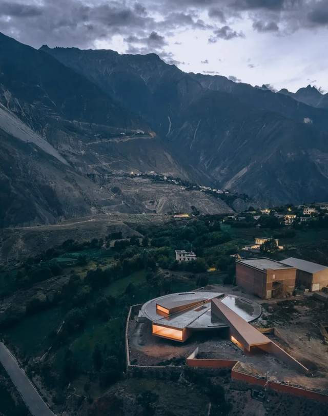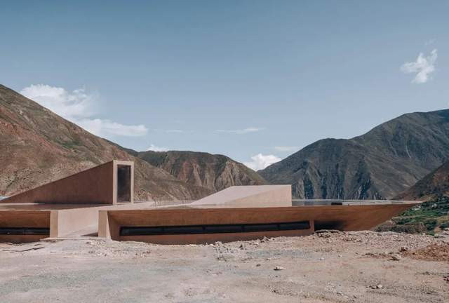 达美拥酒庄位于西藏芒康县,坐落于城镇与山川的自然边界。建筑主体为一个悬挑于澜沧江峡谷之上的红色混凝土碗形结构,与当地地貌色彩相融。它将生产、博物馆与酒店功能合一,并通过嵌入的三角体量及内部从幽暗酒窖到开阔观景台的空间序列,营造出独特的场所体验。