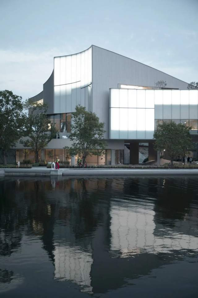 该场馆位于上海世博后滩滨河区,是城市总体规划的关键部分。其开放式设计呼应周边景观,以流畅延展的屋顶连接艺术与公众,旨在成为促进互动的公共空间。项目预计2026年建成。
