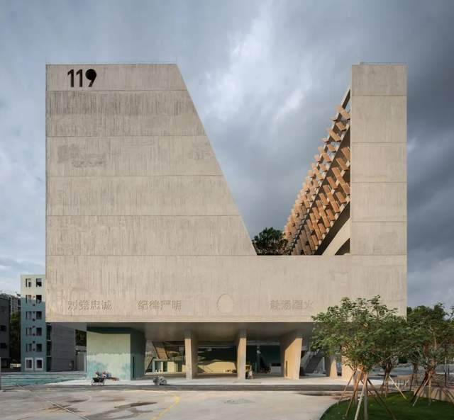荔湾东漖消防及公交站将原本分隔的两块用地整合,构建为高效的城市公共节点。设计以“方塔”(消防站)与“长亭”(公交站)并置,在河涌与旧铁道间形成开放的场域。此处不仅是交通枢纽,更融合了社区活动、消防展示等功能,成为多元共享的公共平台。