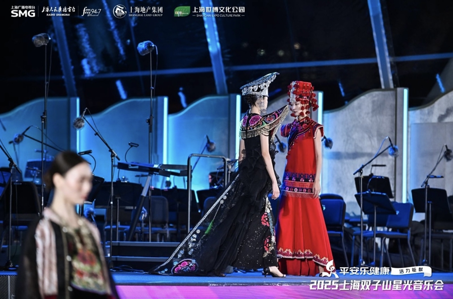 音乐会落幕不久,“沪滇山海情 楚雄彝绣秀上海”活动接棒登场。来自云南楚雄的彝绣时装精品依次亮相,在余韵未散的乐声与星光映衬下,独特的图案构思、精湛的刺绣针法与大胆的色彩搭配徐徐铺展,将彝族先民的创造智慧与对美好生活的向往娓娓道来。作为国家级非物质文化遗产,楚雄彝绣在上海对口帮扶彝绣项目的推动下,实现了从“指尖艺术”到“指尖经济”的蜕变,不仅成功注册集体使用商标、建立数字文化产业园,还走进上海时装周,亮相纽约、米兰、巴黎等国际时装周,助力6万绣娘增收。这场“音画交融”的活动,既是沪滇协作成果的集中展示,也让古老彝绣从深山走向国际,彰显了东方文化的自信与活力。